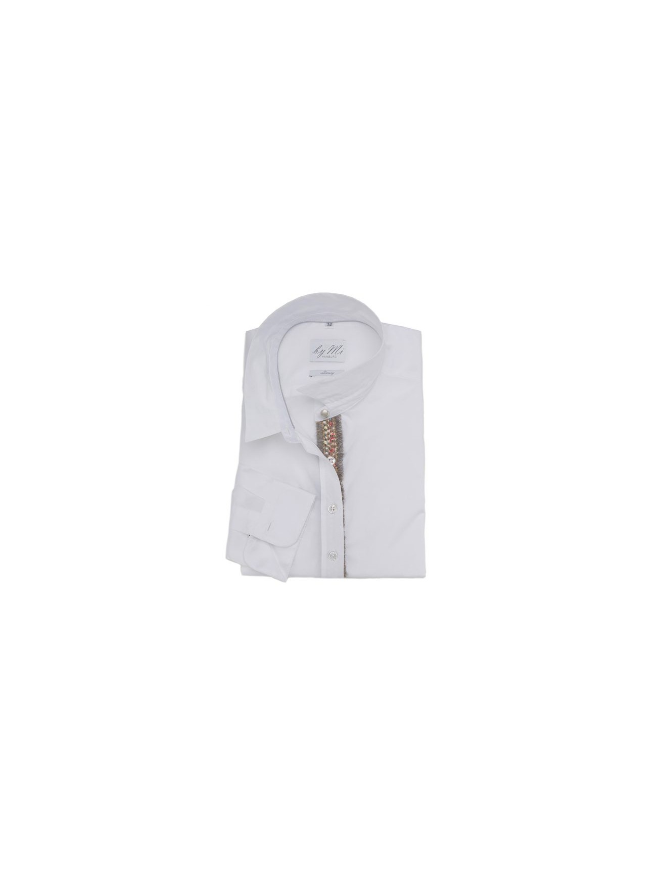 In einem lässigen, modernen Schnitt kommt „Honey Heart“ daher. Das Zierband in Grau-, Pink und Goldtönen wurde nicht nur von bekannten Modeikonen inspiriert, sondern bildet auch das Highlight dieser klassischen Baumwollbluse.