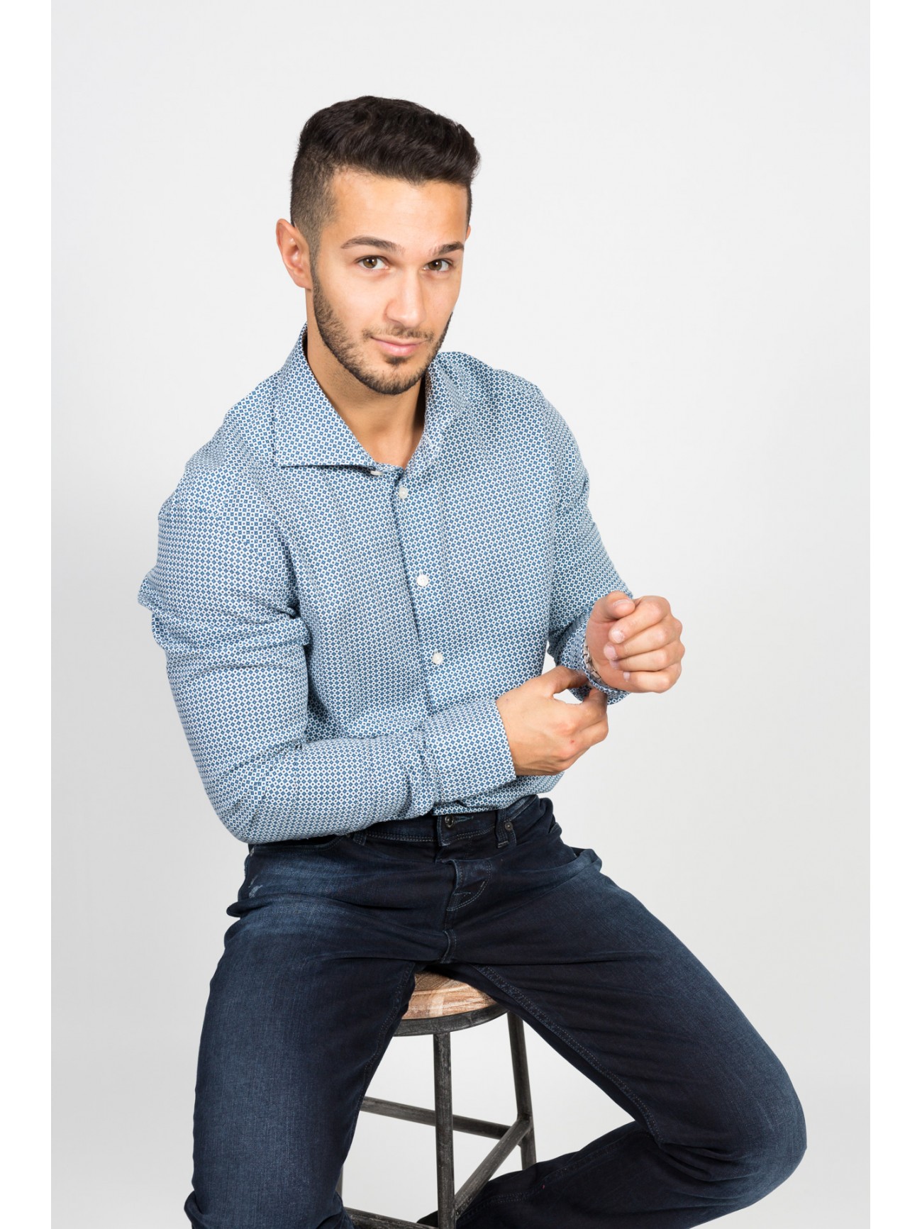 Luxury Casual Hemd mit tailliertem Schnitt und zweifarbigem Print auf Oxfordfond.