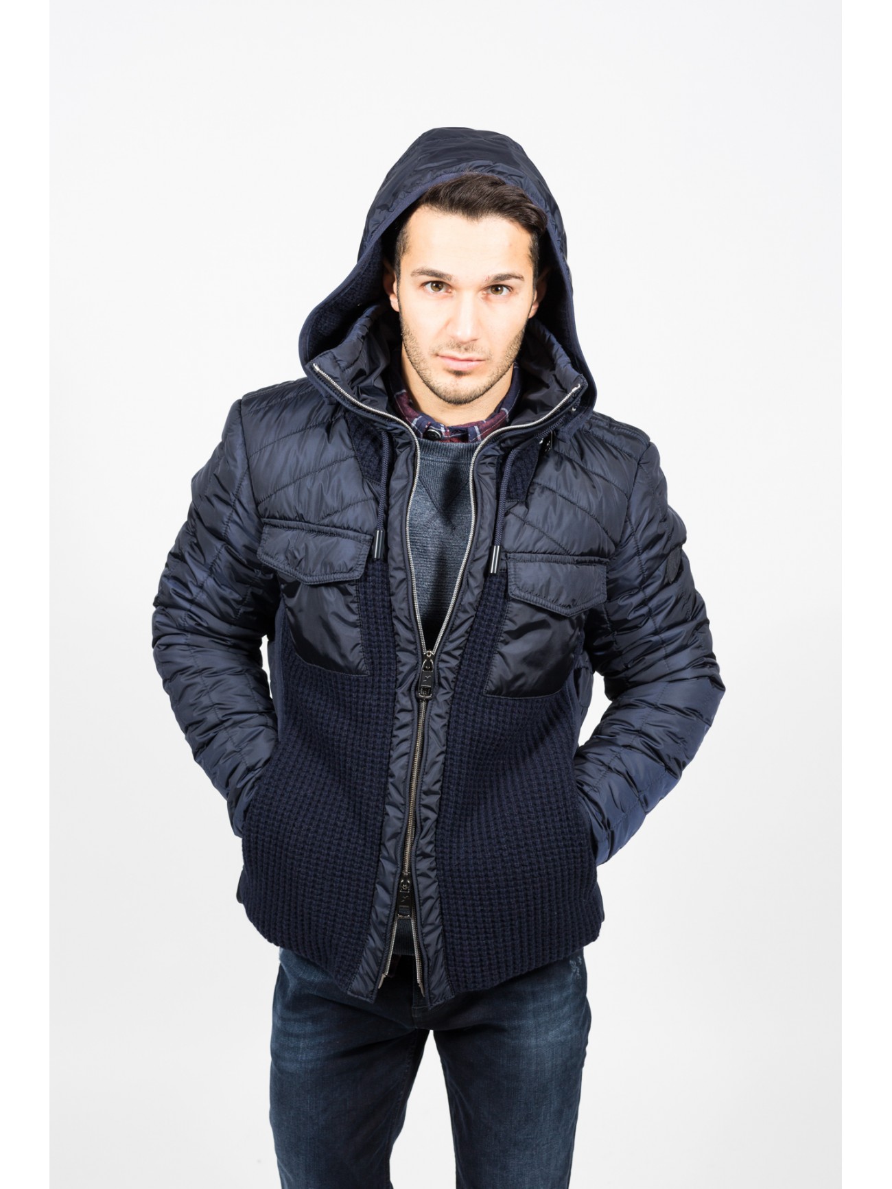 Diese Masche geht auf: supercoole wattierte und gesteppte Jacke im Materialmix aus hochwertigem Nylon und sportivem Strick. Für den perfekten Sitz sorgt der taillierter Schnitt, besonders warm hält der große Stehkragen.