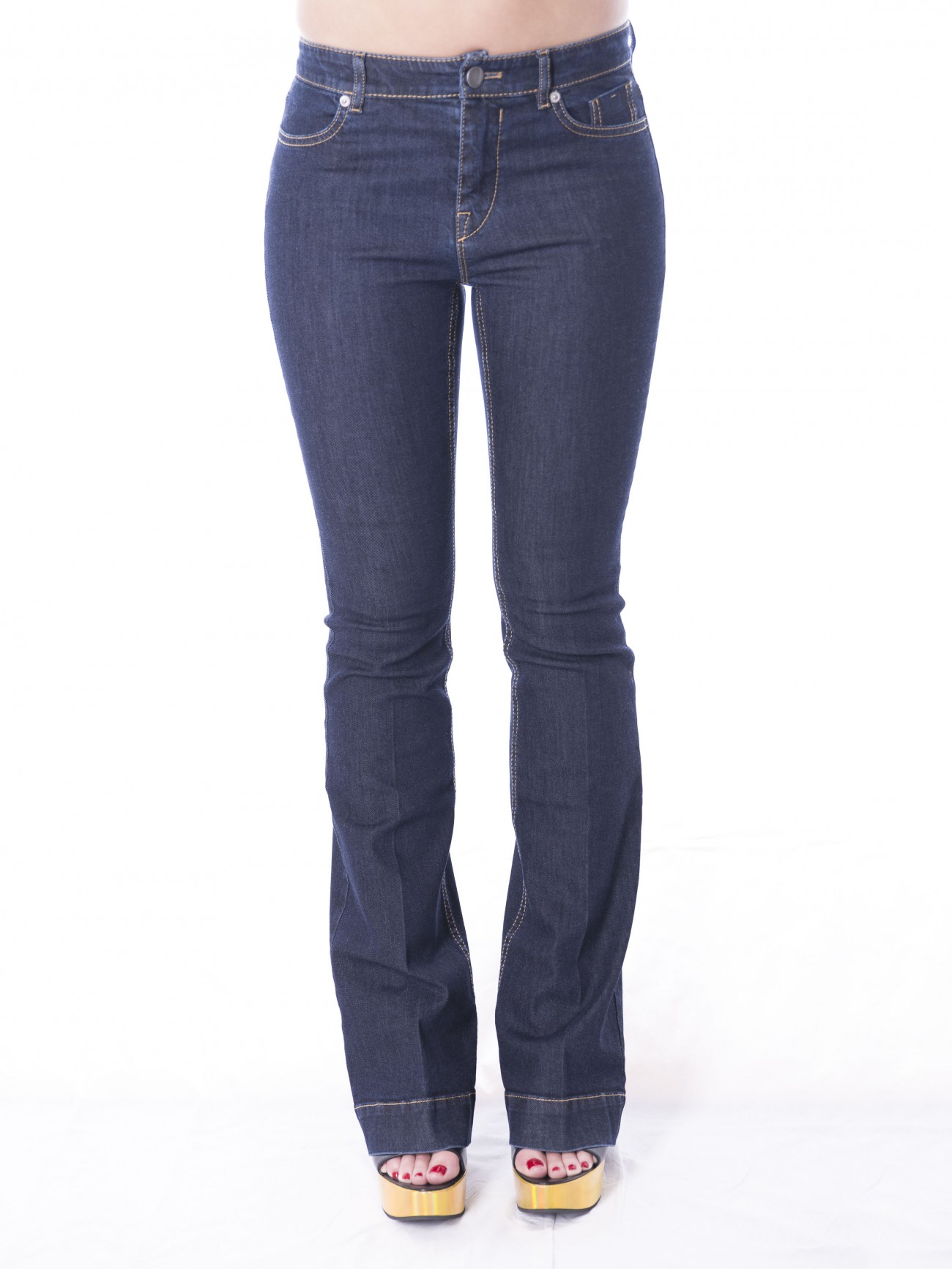 Schlaghose von Marc Cain aus Cottonstretch mit Kontrast-Stitchings, die dem Style eine lässige Note verleihen. Die Jeans mit angesagtem Schlag kommt im Five-Pocket-Format mit kleinem Münzgeldtäschchen. Logo-Metallknopf und Reißverschluss schließen die Hose.