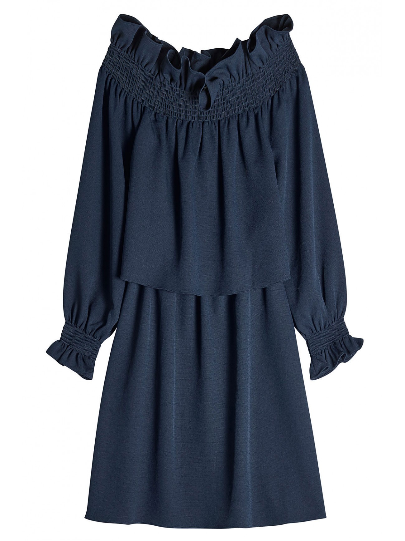 Navyfarbenes Minikleid "Georgie" von Diane von Fürstenberg mit Bardot-Ausschnitt und schwingendem, ausgestellten Rock.