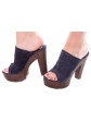 Das hochwertige dunkelblaue Veloursleder ist super weich, während sich Absatz und Plateau in Holzoptik zeigen. Der Schuh hat sehr wenig Eigengewicht.