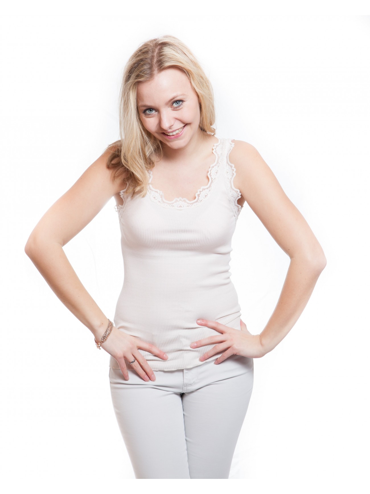 Die Rippentops von Rosemunde gehören einfach in jeden Kleiderschrank. Mit den wunderschönen, spitzenverzierten Tops kann jeder Look feminin umgesetzt werden.